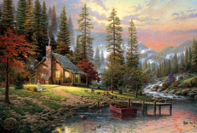 Schmidt - kiváló minőségű, német gyártmányú, 500 darabos festmény puzzle. Thomas Kinkade: A Paceful Retreat Thomas Kinkade amerikai festőművész, önmagát "a Fény festőjeként" jellemzi. Kinkade egy Placerville nevű kisvárosban nőtt fel Kaliforniában, és itt érettségizett 1976-ban. Tanulmányait a University of California, a Berkeley és az Art Center College of Design Pasade