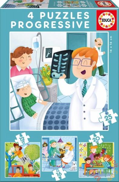 Puzzle gyerekeknek Ha nagy leszek. . motívummal az Educa vállalattól örömet szerez minden gyereknek 3 éves kortól. A képkirakón különféle szakmák láthatóak. Az elemek összeillesztése után 4 képet kap gyerkőce, melyeken szakmákkal ismerkedhet meg csöppsége - orvos, tűzoltó, állatorvos és tanár ábrák elvarázsolják a gyerekeket. A képkirkó ábrái összeillesztése k