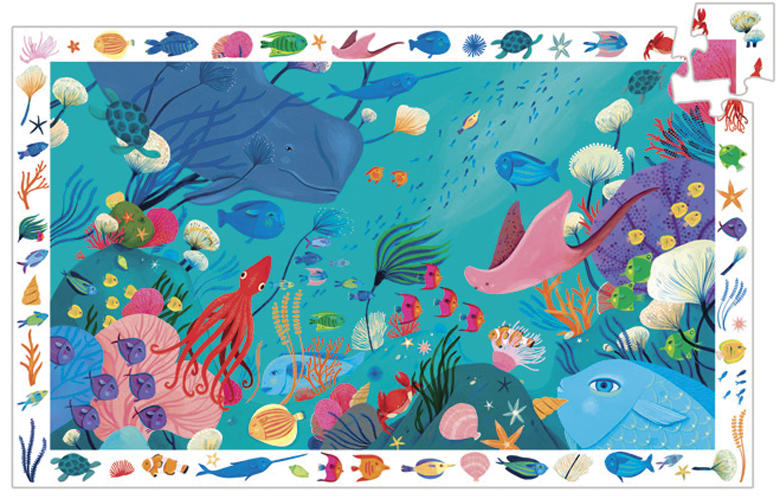 Fedezd fel a tenger mély titkait a Djeco által készített Élet a tengerben, 54 db-os megfigyelő puzzle segítségével! Ez a különleges puzzle játék több mint csak egyszerű kirakós; egy varázslatos utazásra invitál a tengeri élővilág csodálatos világába. Készítsd el a poszter mintájára saját puzzle alkotásodat, és merülj el a részletekben, miközben megismerkedhetsz a