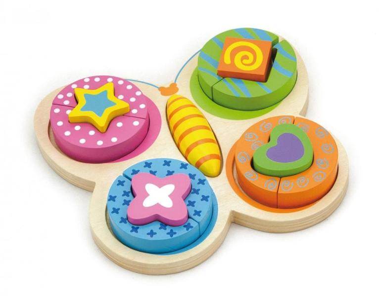 Formalap pillangós. Forma- és szín érzékelést és szem-kéz koordinációt fejlesztő játék Anyaga: fa Mérete: 21,5x 4x 20 cm Doboz mérete: 26 x 4 x 24cm Formalap pillangós. Forma- és szín érzékelést és szem-kéz koordinációt fejlesztő játék Játékosok száma: 1-2 kisgyermek Jelleg: kreatív fa-építőjáték Fejleszti:mozgáskoordinációt, színfelismerést, számolási k