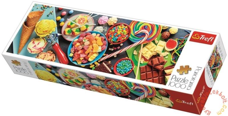 Színes cukorkák 1000db-os panoráma puzzle - Trefl Hivatalos magyarországi forgalmazótól. Leírás: Ez a puzzle szó szerint megédesíti a kirakásával töltött időt, hiszen színes cukorkák, fagylalt és csokoládé ízléses harmóniája teszi egyedivé. Az ezer darabos puzzle másik jellegzetessége a panoráma elrendezés, aminek köszönhetően a kirakott kép csaknem egy méter sz