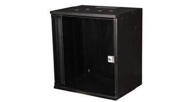 10" fali rack szekrény 12U/280X310, üvegajtó, lapraszerelt, fekete
