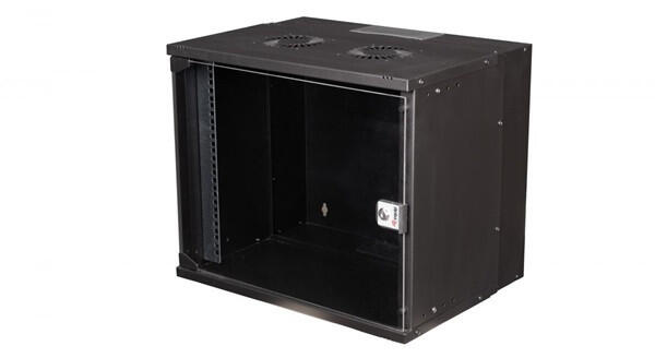 9U Alfaline 555x560 19" fali rack szekrény - RAL9005 fekete - Az Alfaline szekrények három oldalról nyithatóak/zárhatók. - Az oldalsó borítások DKP lemezből, az elülső oldal pedig 4mm vastag, ütésálló, edzett füstüvegből készül, amely fém kerettel van megtámasztva. - A hátsó burkolat nagy szilárdságú DKP lemezből készül és furatokkal van ellátva a falra rögzíté