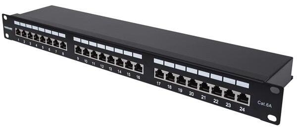Portok száma 24 Méret 19" ICT magasság 1 U ICT kategória Cat. 6A Árnyékolás Igen Csatlakozókkal felszerelve Igen Szerelvény típusa IDC/LSA Anyag ABS, Fém Standard T568A, T568B A kikötők azonosítása számozott mezők formájában Igen RAL szín RAL9004 Színes Fekete Hosszúság 102 mm Szélesség 445 mm Magasság 44.45 mm Súly 0.7 kg Tartalmazott tartozékok Integrált kábelpolc