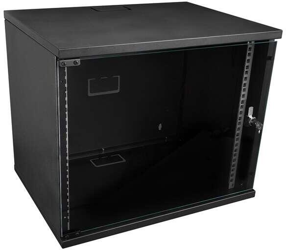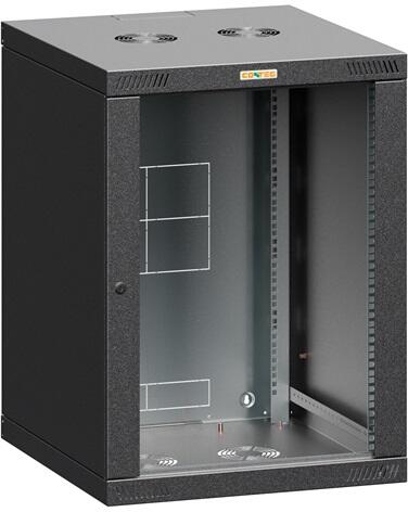 Techson 600 x 450 mély 12U magas, fali 19"-os rackszekrény, üvegajtó, fekete, rackszekrény, beltéri, külső méret 600 x 450 x 650 mm