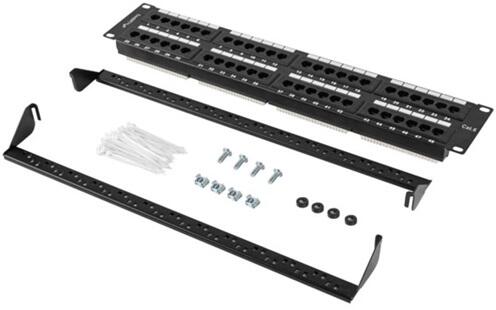 Portok száma 48 Csatlakozó típusa Felszerelt Méret 19" ICT magasság 2 U ICT kategória Cat. 6 Árnyékolás Nem Csatlakozókkal felszerelve Igen Szerelvény típusa IDC/LSA Anyag Fém Standard T568A, T568B A kikötők azonosítása számozott mezők formájában Igen RAL szín RAL9004 Színes Fekete Hosszúság 32 mm Szélesség 483 mm Magasság 89 mm Súly 0.96 kg Tartalmazott tartozékok K