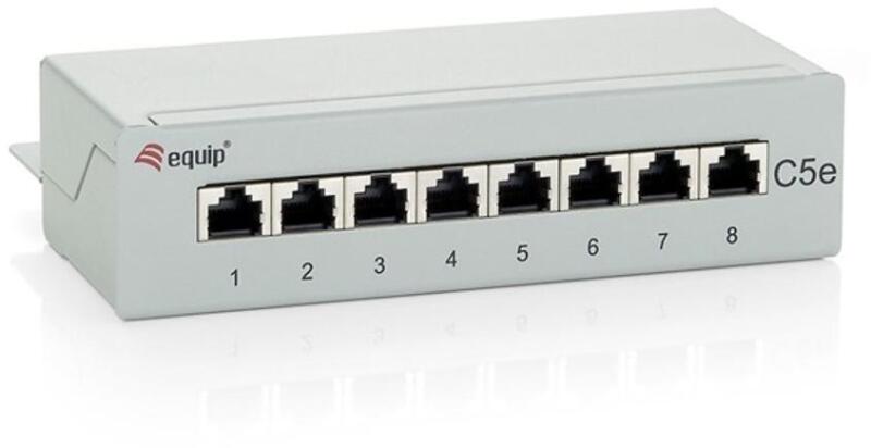 Termék részletek227308 8-Port Cat. 5e Desktop Patch Panel, Light Grey Model Number 227308 SKU 227308 8 Ports x Cat. 5e RJ45 Shielded Class D, up to 100MHz, 10/100Base-T, 1GBase-T Compliant with ANSI/TIA/EIA 568 standard IDC T568A/T568B Color Coded Dual IDC (LSA and 110) compatible 1U Material: Strudy Steel Color: Light Grey (RAL 7035) The equip® Decktop Patch Panel is a compact network distribution unit integrat