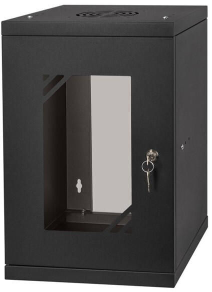 Stalflex RC10-9U-300GB 10" 9U 300 mm mély lapraszerelt fekete üveg ajtós fali rack szekrény