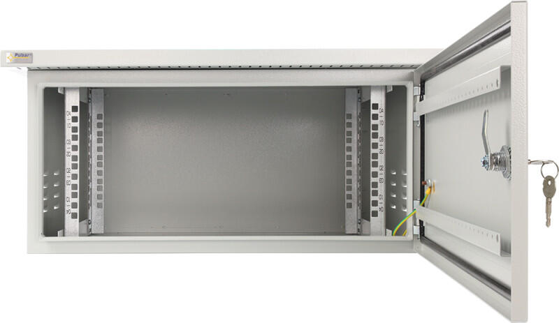 Pulsar RW664 19" 6U 600x450 fali rack szekrény, készre szerelt, fekete Rack kivitel: fali szekrény Szekrény kialakítás: készre szerelt Rack magasság: 6 U Szélesség: 600 mm Mélység: 450 mm Statikus teherbírás: 70 kg Védettség: beltéri IP20 Lemez vastagság - RACK sínek: 1 5 mm Lemez vastagság - keret: 1 2 mm Lemez vastagság - alsó és felső burkolat: 1 2 mm Lemez vastagság -