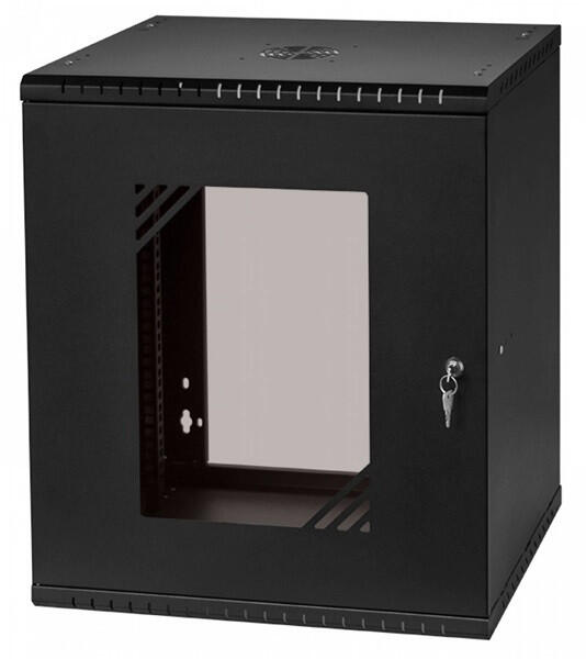 Stalflex RC19-12U-450GB 19" 12U 450 mm mély lapraszerelt fekete üveg ajtós fali rack szekrény