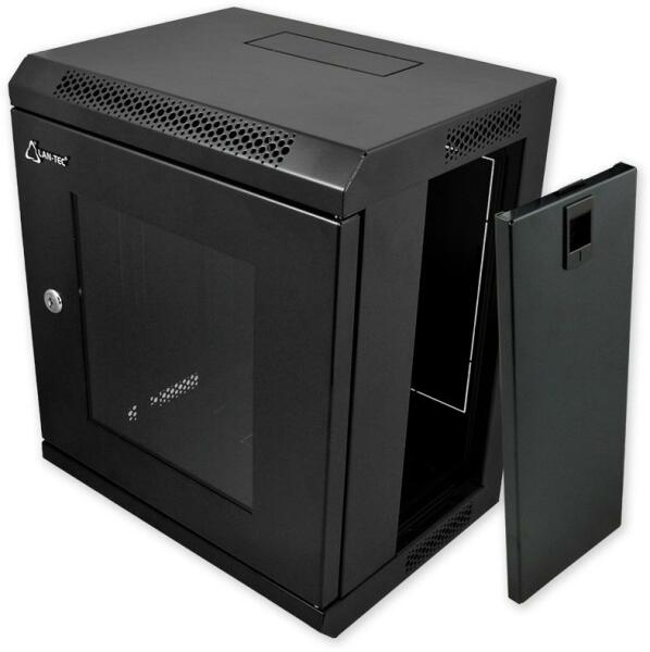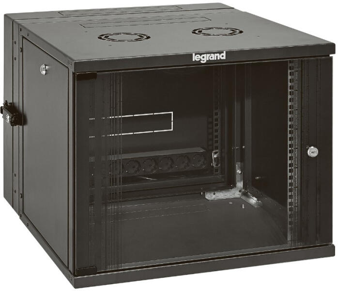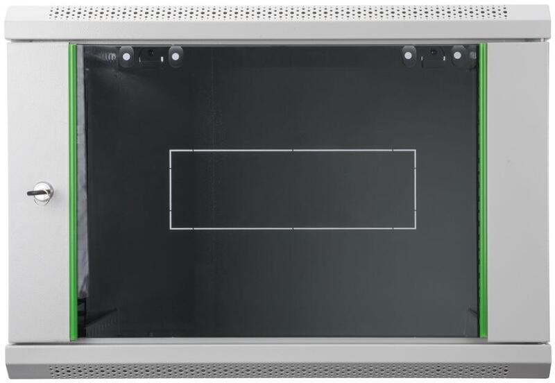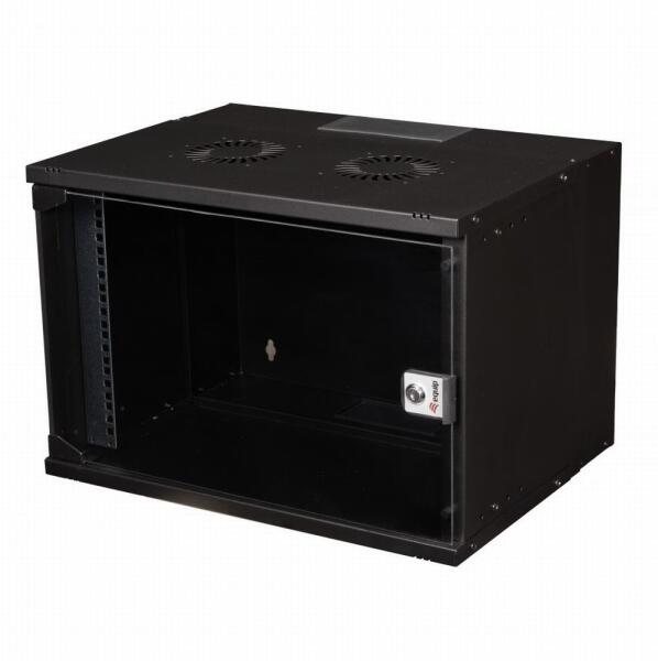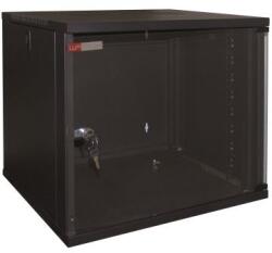 10 "falra szerelhető adatszekrény üvegajtóval, összeszerelve. Szilárd hegesztett szerkezet, acéllemez keret, fekete porbevonat. A szekrény teljesen összeszerelt állapotban kerül szállításra. Az üvegajtók lehetővé teszik a szekrény belsejében lévő berendezések azonnali áttekintését. Alkalmas legkisebb hálózatok és egyszerű otthoni megoldás. A kapcsolószekrény típus