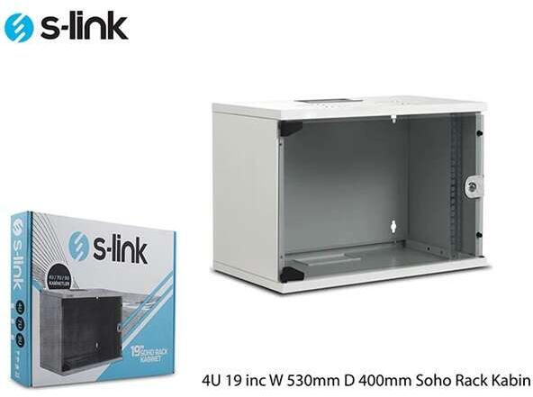 S-Link Rackszekrény - 4U 19" fali kivitel (190x530x400mm, Flatpack, világosszürke)