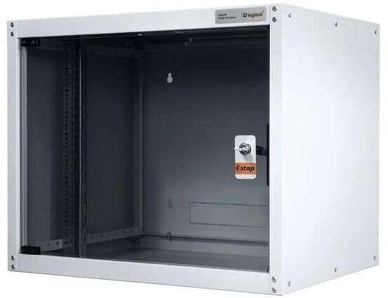 19" fali rack szekrény Leszerelhető hátsó panel (csavaros) Fix oldallapos (nem leszerelhető) Maximális statikus terhelhetőség: 65 kg Műszaki jellemzők: IP20 - IK08 / RAL7035 - szürke 4mm vastag füstszínű biztonsági üveggel szerelt megfordítható ajtó, amely 120°-ban nyitható. Két darab (1 pár), mélységben állítható, 1,5 mm vastag, 3 hajtással rendelkező, stabil, acél
