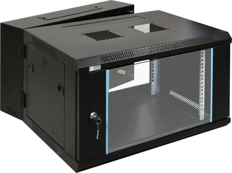 Falra szerelhető, Keret kapacitása:9U, Méret:19", Magasság:445mm, Szélesség:450mm, Mélység:540mm, Black RAL9005, Összeszerelt