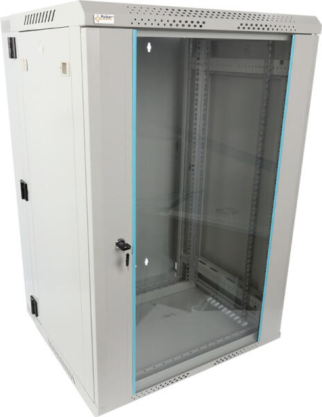 Pulsar RWDA1865-G 19" 18U 600x550 fali rack szekrény, kiforgatható, lapra szerelt, szürke, könnyített kialakítás Rack kivitel: fali szekrény Szekrény kialakítás: kiforgatható lapra szerelt Rack magasság: 18 U Szélesség: 600 mm Mélység: 550 mm Statikus teherbírás: 60 kg Védettség: beltéri IP20 Lemez vastagság - RACK sínek: 1 5 mm Lemez vastagság - keret: 1 mm Lemez vastags
