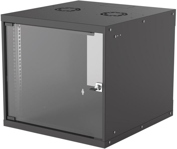 EXTRALINK állványszekrény fekete - 6U, 600 × 450 Az Extralink rack szekrényt falra szerelhető irodákban, hálózati szervertermekben és CCTV vezérlőtermekben. A külső falak hidegen hengerelt acéllemezből készülnek. Az edzett üveggel felszerelt bejárati ajtó balra vagy jobbra nyílhat. Jól látható szekrénymagasság A függőleges sínek megfelelő magassági jelöléssel rend