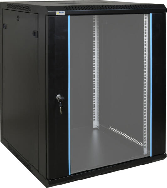Pulsar RW1566 19" 15U 600x600 fali rack szekrény, készre szerelt, fekete Rack kivitel: fali szekrény Szekrény kialakítás: készre szerelt Rack magasság: 15 U Szélesség: 600 mm Mélység: 600 mm Statikus teherbírás: 70 kg Védettség: beltéri IP20 Lemez vastagság - RACK sínek: 1 5 mm Lemez vastagság - keret: 1 2 mm Lemez vastagság - alsó és felső burkolat: 1 2 mm Lemez vastagság