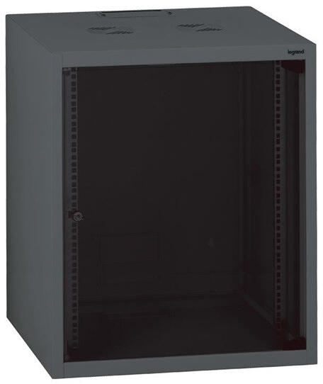 Antracit szürke egyrészes biztonsági üvegajtós készre szerelt Linkeo fali rack szekrény MAX: 45 kg IP 20 - IK 08RAL7016 - antracit szürkeMegfordítható, biztonsági üvegajtóval szerelt fali 19" rack szekrény 1 db zárszerkezettel és 2 db kulccsal szállítva (levehető oldallapokhoz is használható kulcs)2 db (1 pár), mélységben állítható 19" profilsínnel szállítva, további