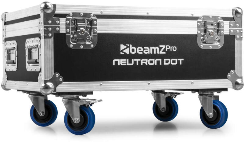 Műszaki adatok: - Robusztus Hybrid lámpatestekhez való gurulós koffer - 8 db Neutron-Dot befogadására tervezve - Pillangó zárak és alumínium profilok mindenhol - Gömbszegélyek és süllyesztett fogantyúk - A felső fedelet nyitva tartó zsanérok - Belülről tömör habszivaccsal ellátva - Márka: beamZ - Termék színe: Fekete - Méretek: (H x B x K) 630 x 610 x 255mm - Súly: 17,6