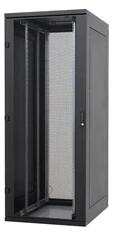 Perforált ajtóval, levehető zárható fém oldalfal és perforált hátlap, három pár perforált tartósín, szintezőláb készlettel, RAL9005 Fekete Max. teherbírás: 800kg, Szétszedhető