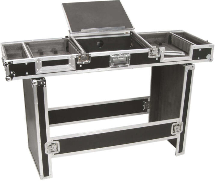 Műszaki adatok: - Gurítható, kerekekkel szerelt kivitel - Tetejét leszedve asztallá alakítható - Szabvány Rack méret - Szélesség: 19 (48,26 cm) - Döntött felső lap férőhelyeinak száma: 8U - Egy pár CD lejátszó hely - 1U (Unit - egység) = 44,5 mm - Anyaga: Rétegelt lemez, fém élek és sarkak - Rétegelt lemez vastagsága: 5mm - Pillangózáras előlap, hátlap rögzítés -