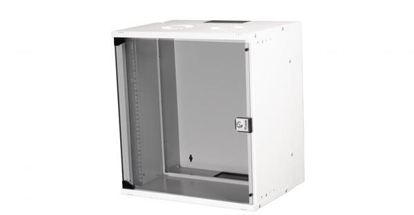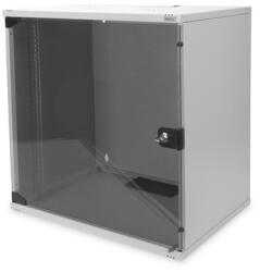 DIGITUS 19" 12U 595x540x400mm lapraszerelt üvegajtós szürke fali rack szekrény