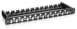 Termék részletek769225 24-Port Keystone Cat. 6A Unshielded Patch Panel, Black Model Number 769225 SKU 769225 19", 1U 24 Port x Keystone Cat. 6A UnShielded Snap-in mounting Including support bar Material: Sturdy Steel Color: Black (RAL 9005) The equip® Patch Panel is a 19" 1U network distribution unit integrating cable management system for better routing and strain relief requirements, suitable for both LSA and