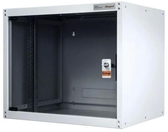 LEGRAND fali rack szekrény, 19'' 9U SZÉL: 600 MÉLY: 450 MAG: 495 szürke egyrészes, üvegajtós készre szerelt MAX: 65 kg Evoline 19" fali rack szekrény Leszerelhető hátsó panel (csavaros)Fix oldallapos (nem leszerelhető)Maximális statikus terhelhetőség: 65 kg 450 mm mély rack szekrény Hátsó rész hozzáadásával kinyitható változatú kétrészes szekrénnyé alakítható Műsz