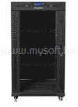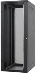 42U Perforált első egyszárnyú és dupla hátsó ajtóval, levehető zárható fém oldalfal, két pár perforált sín , RAL9005 max terh. 1200Kg, Fekete