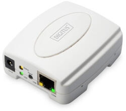 DIGITUS DN-13003-2 1x RJ45 Fast Ethernet USB 2.0 nyomtatószerver DIGITUS Fast Ethernet Nyomtatószerver, USB 2.0Termékleírás A DIGITUS Fast Ethernet Nyomtatószerver egyszerűen hálózati nyomtatóvá alakítja a munkahelyi nyomtatót, lehetővé téve az összes csatlakoztatott felhasználó számára a nyomtató közös használatát. Jellemzők: Lehetővé teszi több PC számára egy USB