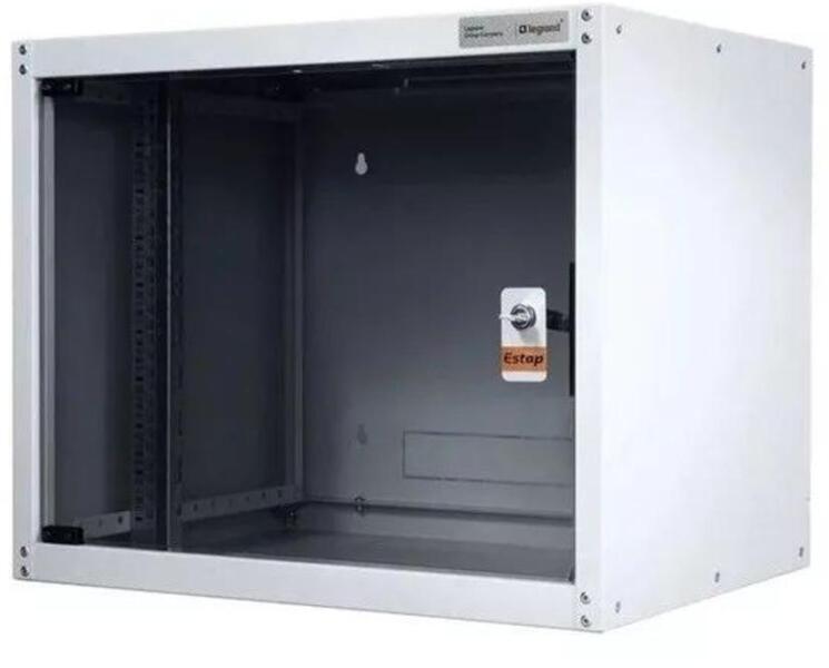 LEGRAND hálózati rack szekrény, 19'' 42U SZÉL: 800 MÉLY: 800 MAG: 1894 szürke dupla perforált ajtó elöl és hátul MAX: 1000 kg Evoline/Estap Négy darab, mélységben állítható 19" profilsínnel szállítva, amelyek jól látható U számozással vannak ellátva lentről és fentről számolva egyaránt. 2 darab kulccsal szállítva (kidönthető/levehető oldallapokhoz és hátlaphoz