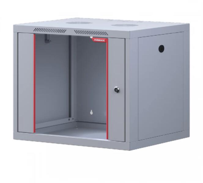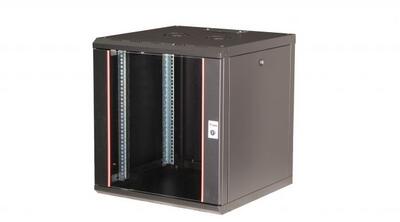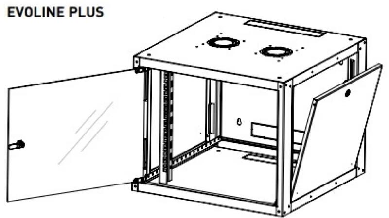 Evoline+ 19" 12U 600x600mm levehető oldallapos üvegajtós egyrészes fali rack szekrény.