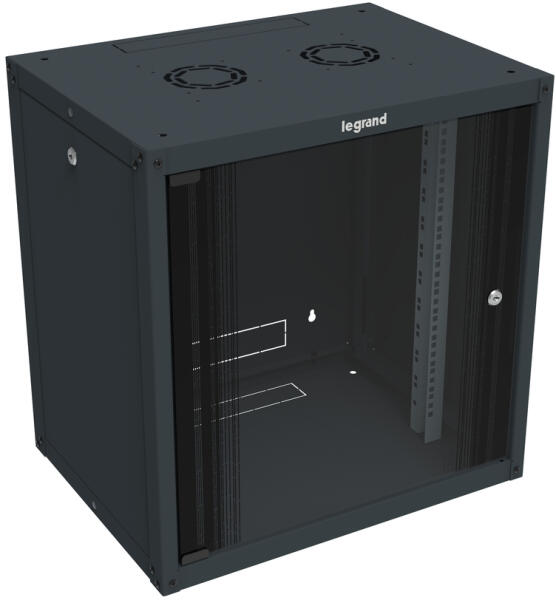 LEGRAND fali rack szekrény 19'' 9U MAG: 494 SZÉL: 600 MÉLY: 450 antracit egyrészes üvegajtós lapraszerelt levehető oldallapos MAX: 27 kg Linkeo (646251)