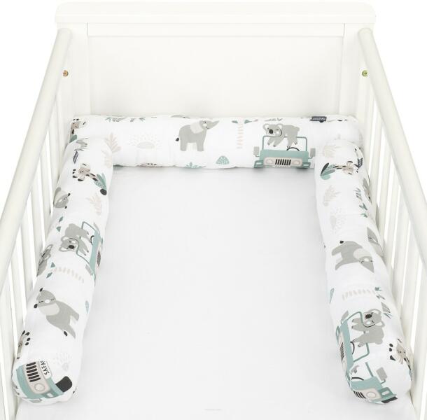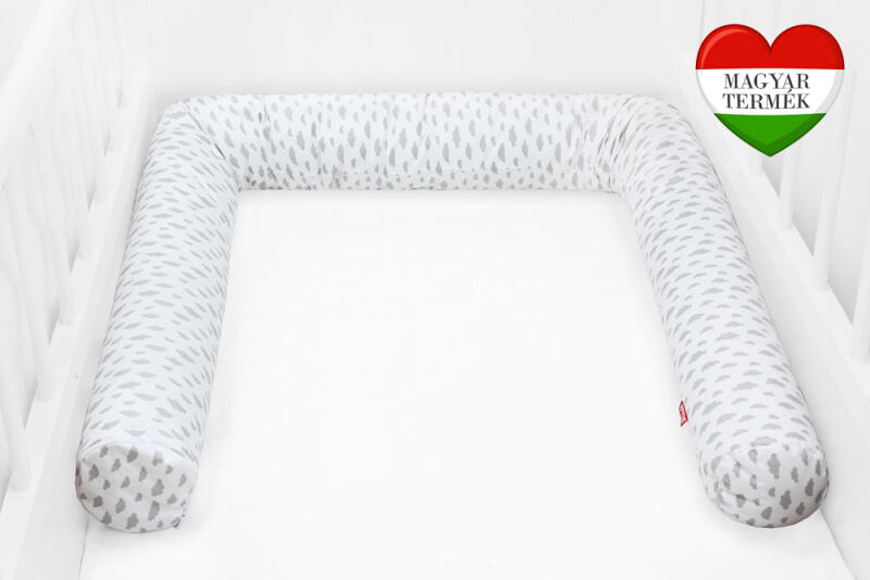Termék részletekKiságy rácsvédő - 3x60 cm henger forma hossza: 180 cm (3x60 cm) (+/- 3cm) átmérője: 12 cm (+/- 3cm) külső anyag: 100% pamut töltet: rugalmas és légáteresztő szilikonizált golyó Kompatibilis: 60x120 és 70x140 cm. A kiságy rácsvédőjének fő feladata, hogy megvédje a gyermeket az esetleges ütésektől. Nem csak a kiságyban védi a babát, hanem a falhoz fektetve a nagyobb ág
