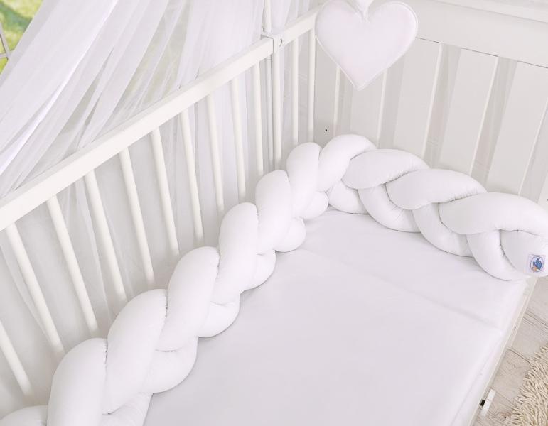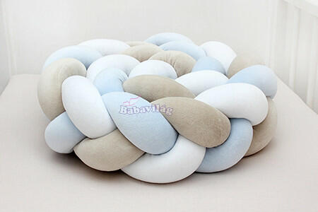 Gyönyörű, nagyon puha fonott gyermekágyba való rácsvédő, 100% pamutból. Rúdhoz rögzíthető. A rácsvédő megvédi a baba kezét és lábáta rácsok közöttielakadástól , valamint a csecsemő fejét és testéta kiságy falához való ütközés ellen. A mellékelt pamut kötőkkel a fészek rögzíthető a rudakhoz. A normál rácsvédőkkel összehasonlítva ez lehetővé teszi a