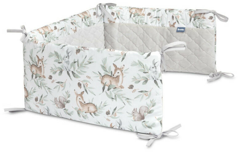 Termék részletekTökéletes kiegészítője a babaszobának, amely megvédi gyermekedet, hogy beüsse a fejét vagy testét az ágyrácsba. Az egyik oldal puha, mintás pamut anyaggal készült, a másik fele pedig magas minőségű plüss anyagból. Főbb jellemzők: 120x60 cm-es ágyra tervezve újszülött kortól méret: 180x30 cm (x/- 2 cm) külső borítás: 100 pamut / 100% poliészter (plüss) töltet: 10