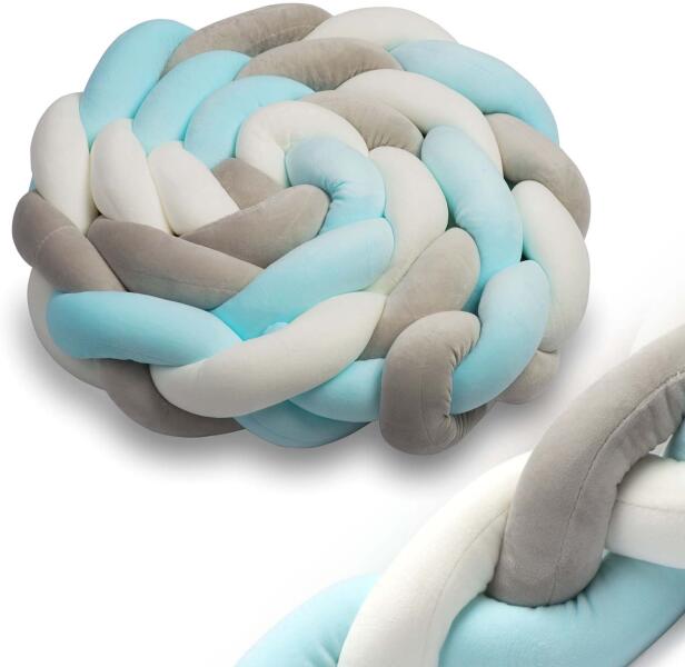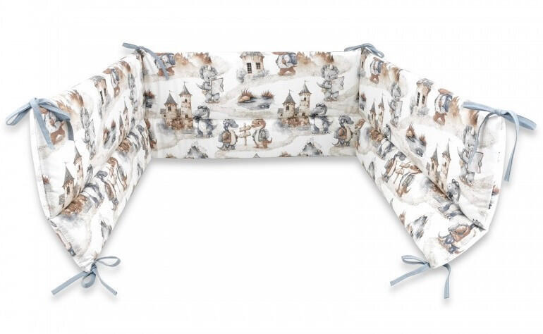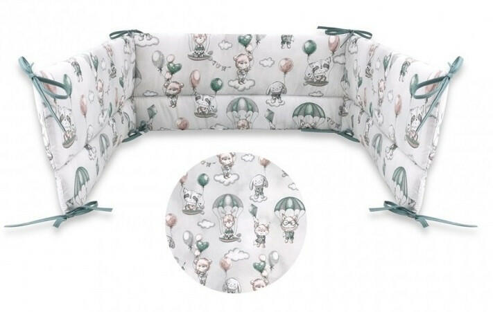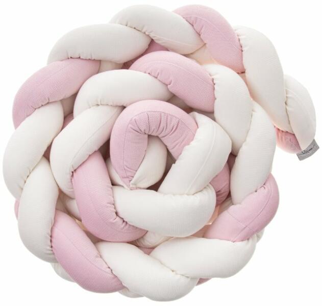 Design XL kézzel készített bölcsővédő/köpeny prémium minőségű anyagokból. Mantinel fonat nagyon puha, és használható a kiságyban, fészekként vagy a kanapén. A fonat négy csíkból készül. A mantella pamutszövetből készült, a töltelék antiallergén szilikonszál. Hossza 350 cm, magassága 20 cm, vastagsága 9 cm. A fonat kézzel van varrva. A termék megfelel az Öko-Te