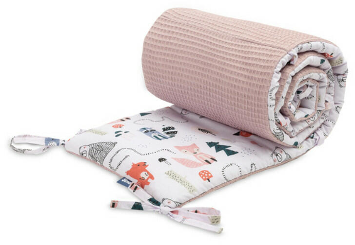 A Sensillo WAFFLE rácsvédője tökéletes választás, ha nem szeretnénk a szokásos vastag rácsvédőket használni a baba ágyában. Vékonyabb anyaga van, de tökéletesen megvédi a gyermek buksiját és testét attól, hogy beüsse az ágykeretbe. Kétféle anyagból készült: az egyik oldal puha, kellemes tapintású, nyomott mintás pamutból készült, a másik oldal pedig színes, mi