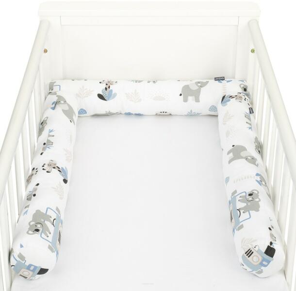 Kiságy rácsvédő - 3x60 cm henger forma hossza: 180 cm (3x60 cm) (+/- 3cm) átmérője: 12 cm (+/- 3cm) külső anyag: 100% pamut töltet: rugalmas és légáteresztő szilikonizált golyó Kompatibilis: 60x120 és 70x140 cm. A kiságy rácsvédőjének fő feladata, hogy megvédje a gyermeket az esetleges ütésektől. Nem csak a kiságyban védi a babát, hanem a falhoz fektetve a nagyobb ág