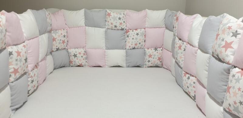 A pamut rácsvédő kiságyba egyetlen babaágyból sem hiányozhat. Puha töltet és lágy anyaga megvédi a babát a kiságy oldalához ütközéstől, biztonságérzetet és kényelmet nyújtva neki. Ezenkívül megakadályozza, hogy a baba kidugja a kis karjait és lábait a kiságyból, és a baba elégedetten és zavartalanul aludhat. Kellemes tapintású, 100% pamutból készült. Könnyen
