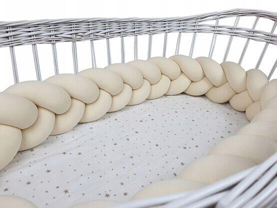 Kiváló minőségű anyagokból készült dizájn kiságyvédő. A fonott védő nagyon puha, és használható a kiságyban, fészekként vagy a kanapén. A védő pamutszövetből készült, a töltelék antiallergén szilikonszál. Hossza kb. 300 cm, magassága kb. 15 cm, vastagsága kb. 6 cm. A fonat kézzel varrott. Ha a protektor más méretben érdekli, ne habozzon kapcsolatba lépni velü