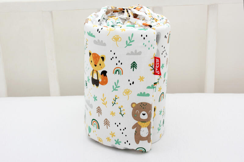 Gyönyörű, nagyon puha fonott gyermekágyba való rácsvédő, 100% pamutból. Rúdhoz rögzíthető. A rácsvédő megvédi a baba kezét és lábáta rácsok közöttielakadástól , valamint a csecsemő fejét és testéta kiságy falához való ütközés ellen. A mellékelt pamut kötőkkel a fészek rögzíthető a rudakhoz. A normál rácsvédőkkel összehasonlítva ez lehetővé teszi a