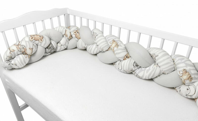 Kiváló minőségű anyagokból készült dizájn kiságyvédő. A fonott védő nagyon puha, és használható a kiságyban, fészekként vagy a kanapén. A védő pamutszövetből készült, a töltelék antiallergén szilikonszál. Hossza kb. 360 cm, magassága kb. 15 cm, vastagsága kb. 6 cm. A fonat kézzel varrott. Ha más méretű vagy színű protektor érdekli, kérjük, forduljon hozzá