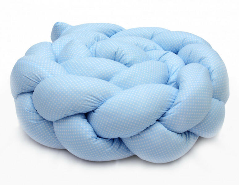 Kiváló minőségű anyagokból készült dizájn kiságyvédő. A fonott védő nagyon puha, és használható a kiságyban, fészekként vagy a kanapén. A védő pamutszövetből készült, a töltelék antiallergén szilikonszál. Hossza kb. 400 cm, magassága kb. 15 cm, vastagsága kb. 6 cm. A fonat kézzel varrott. Ha más méretű vagy színű protektor érdekli, kérjük, forduljon hozzá