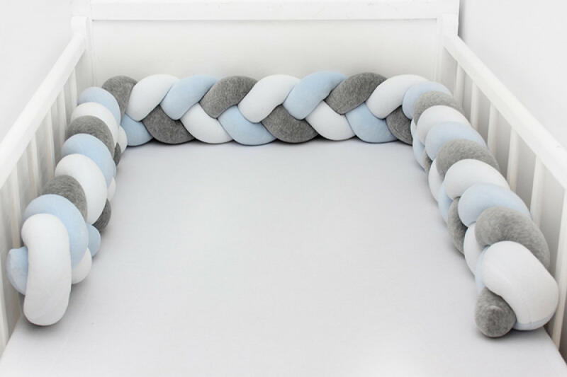 Foxy Baby Puha fonott rácsvédő200 cm Gyönyörű, nagyon puha fonott gyermekágyba való rácsvédő. A rácsvédő megvédi a baba kezét és lábát a rácsok közötti elakadástól, valamint a csecsemő fejét és testét a kiságy falához való ütközés ellen. A fonott rácsvédő végei gondosan el vannak varrva, hogy ne szakadjanak el a mosás és használat során. Gyönyörű megjel