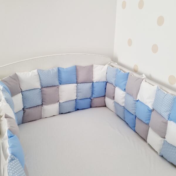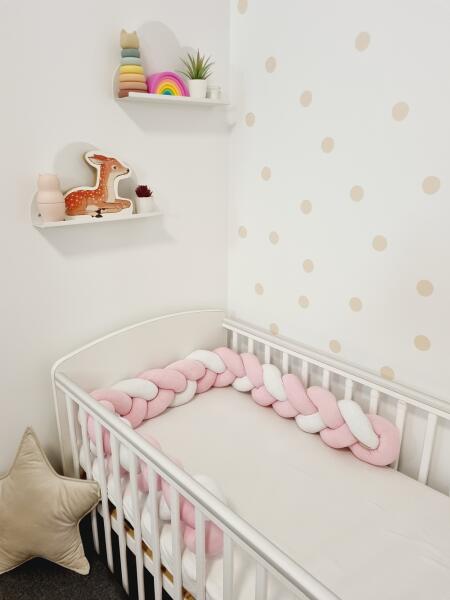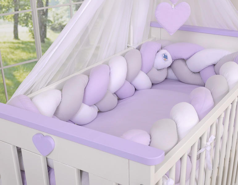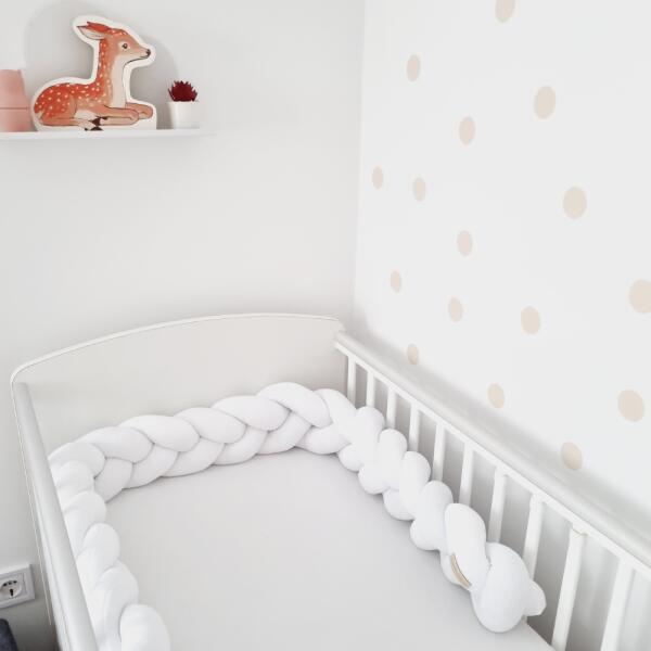 Gyönyörű, nagyon puha fonott rácsvédő100% pamutból. Rácsokhoz rögzíthető. A rácsvédő megvédi a baba kezét és lábát attól, hogy beszoruljon a rácsok közé, valamint megóvja a baba fejét és testét a kiságy falához való ütközéstől. Sok szín közül lehet választani. Meg fogja találni a szobájához illőt. Mérete: 360cm
