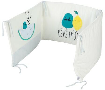 A rácsvédő, biztosítja a jó éjszakai alvást és a biztonságot a kiságyban való játék közben. Kiköthető, ennek köszönhetően nem mozog a kiságyban. Hímzett animációk „gyümölcsös mintákkal az édes éjszakai alvásért. 60x120 cm-es ágyba 8 db kötővel rögzíthető Vidám, gyümölcsös, színes mintákkal Méret: kb. 180 x 40 x 1 cm Anyag: poliészter (puha plüss)