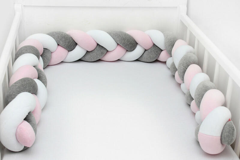 Design XL kézzel készített bölcsővédő/köpeny prémium minőségű anyagokból. Mantinel fonat nagyon puha, és használható a kiságyban, fészekként vagy a kanapén. A fonat négy csíkból készül. A mantella pamutszövetből készült, a töltelék antiallergén szilikonszál. Hossza 240 cm, magassága 20 cm, vastagsága 9 cm. A fonat kézzel van varrva. A termék megfelel az Öko-Te
