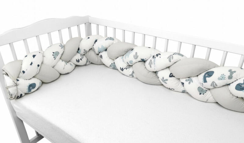Fonott rácsvédő kiságyba Belisima aksamit, puha és kellemes tapintású. Pamutból és antiallergén poliészter töltőanyagból készült. A csomag szalagokkal rendelkezik, hogy a copfot a kiságyhoz lehessen rögzíteni. A rögzítéssel biztosítja gyermekének a biztonságos és egészséges alvást. A copf felhasználható babafészekként, vagy dekorációként a szobába, esetleg mint