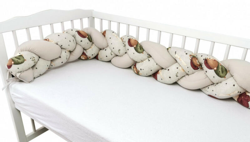 Gyönyörű, nagyon puha fonott gyermekágyba való rácsvédő, 100% pamutból. Rúdhoz rögzíthető. A rácsvédő megvédi a baba kezét és lábáta rácsok közöttielakadástól , valamint a csecsemő fejét és testéta kiságy falához való ütközés ellen. A mellékelt pamut kötőkkel a fészek rögzíthető a rudakhoz. A normál rácsvédőkkel összehasonlítva ez lehetővé teszi a